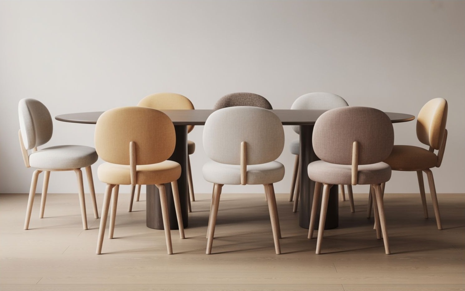 És igen: az ovális étkezőasztalokhoz különösen fontos a lágy forma — ez még közelebb hozza egymáshoz a székeket és az asztalt vizuálisan.