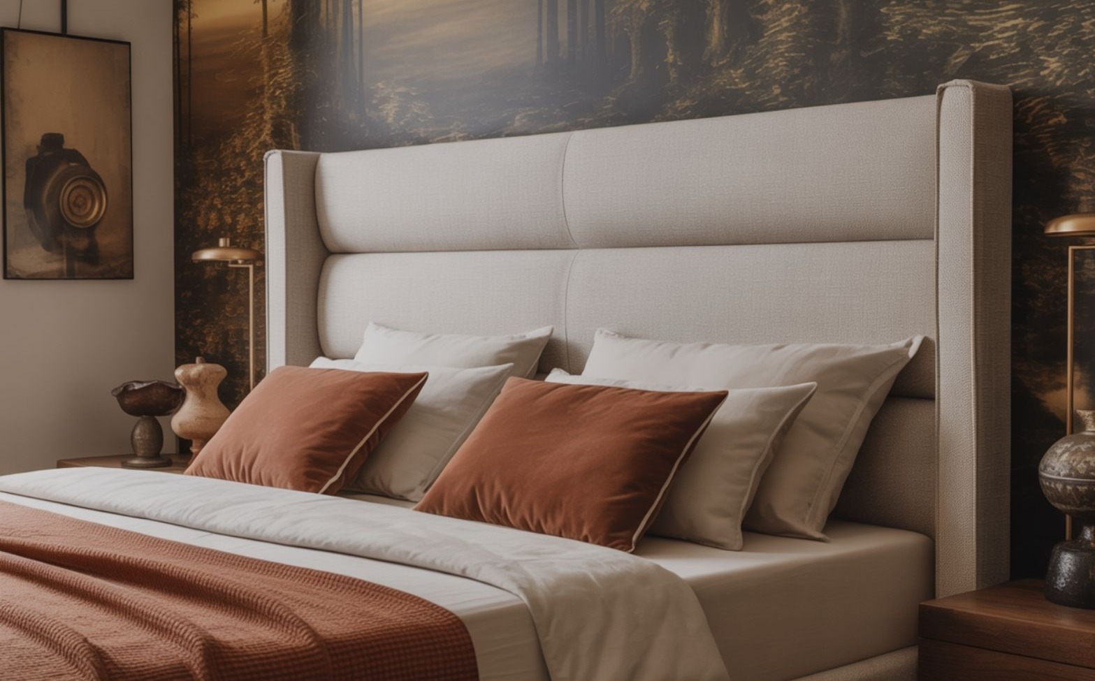 2026-ban az ágyvég már nem egyszerű kiegészítő. Nem csak az ágy vége, hanem a hálószoba vizuális és érzelmi tengelye. A túlméretezett ágytámlák – amik gyakran a teljes falat lefedik, vagy legalábbis jóval túlnyúlnak a matrac szélességén – határozott fókuszt teremtenek, és az egész teret újrarendezik.
