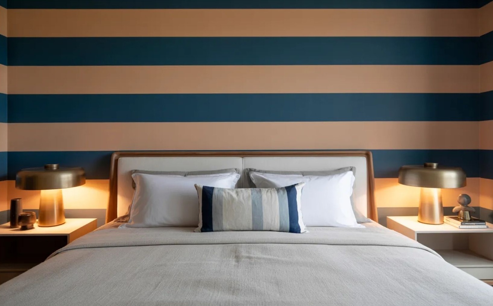 A vízszintes csíkozás szélesíti a helyiséget, de nagyobb felületen könnyebben válhat dominánssá. Éppen ezért a tervezők gyakran csak hangsúlyos falon alkalmazzák, vagy kisebb terekben kísérleteznek vele.