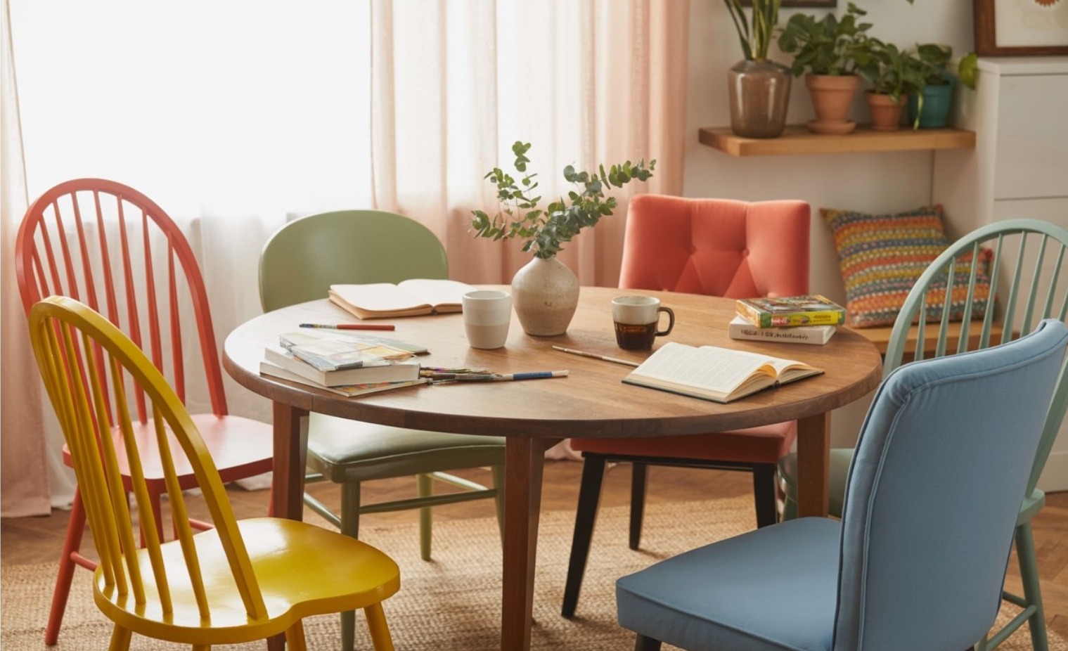 A kulcs nem a káosz — hanem az, hogy legyen egy közös elem (anyag, tónus, forma), amitől a tér összefogott marad.