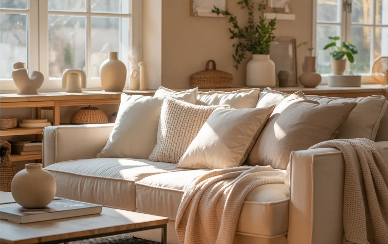 A homokszín szinte észrevétlenül működik. Nem akar kitűnni, inkább finoman összefogja a teret, és egységes alapot ad. Különösen jól illeszkedik a puha minimalizmushoz, mert nem kontrasztokra épít, hanem átmenetekre. Kis és nagy terekben egyaránt működik, mert nem nehezíti el a látványt.