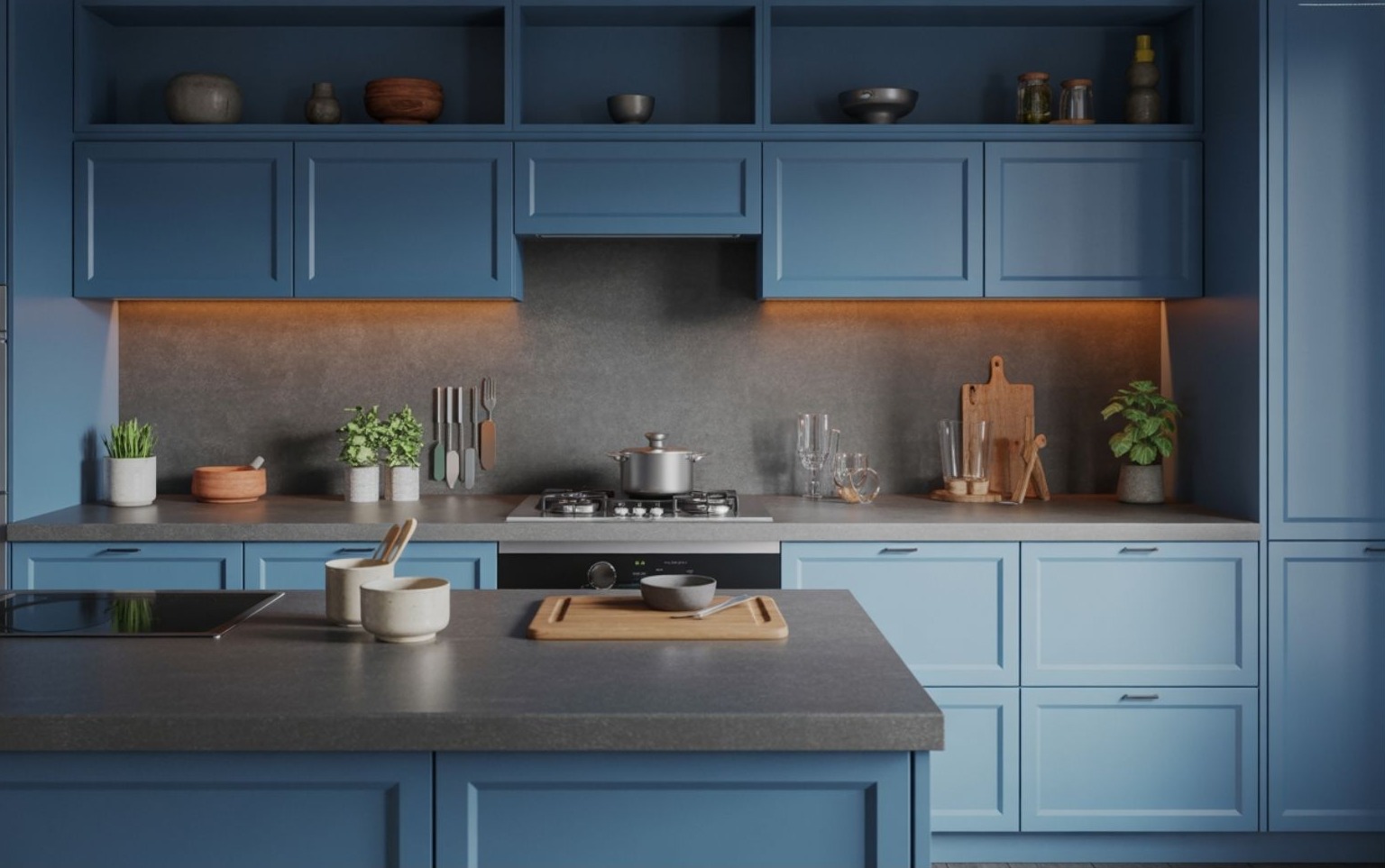 Bár a színes konyhák nem tűnnek el, a tervezők egyre óvatosabbak az élénk árnyalatokkal a konyhai munkalapokon. Egy intenzív vörös, élénk kék vagy türkiz elsőre izgalmas lehet, de nagy felületen gyorsan fárasztóvá válik – és meglepően hamar divatjamúlttá lesz.