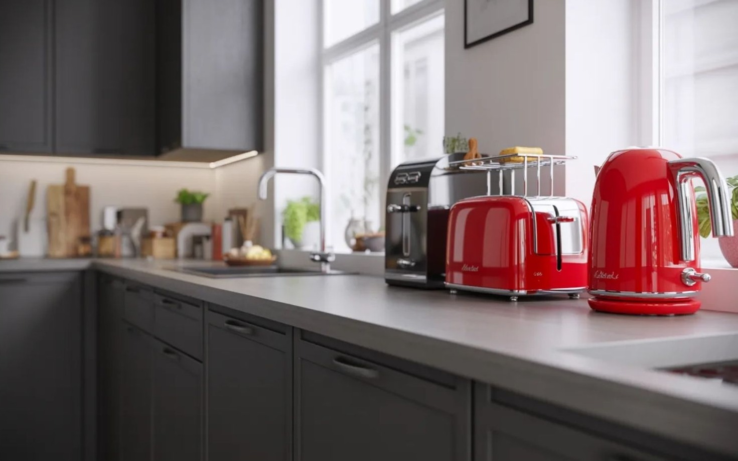 2026-ban a konyhai kisgépek és eszközök már nem elbújnak, hanem megmutatják magukat. Egy krém, halványzöld, mélykék vagy fekete kávéfőző, vízforraló vagy robotgép önmagában is színfoltként működik a pulton.