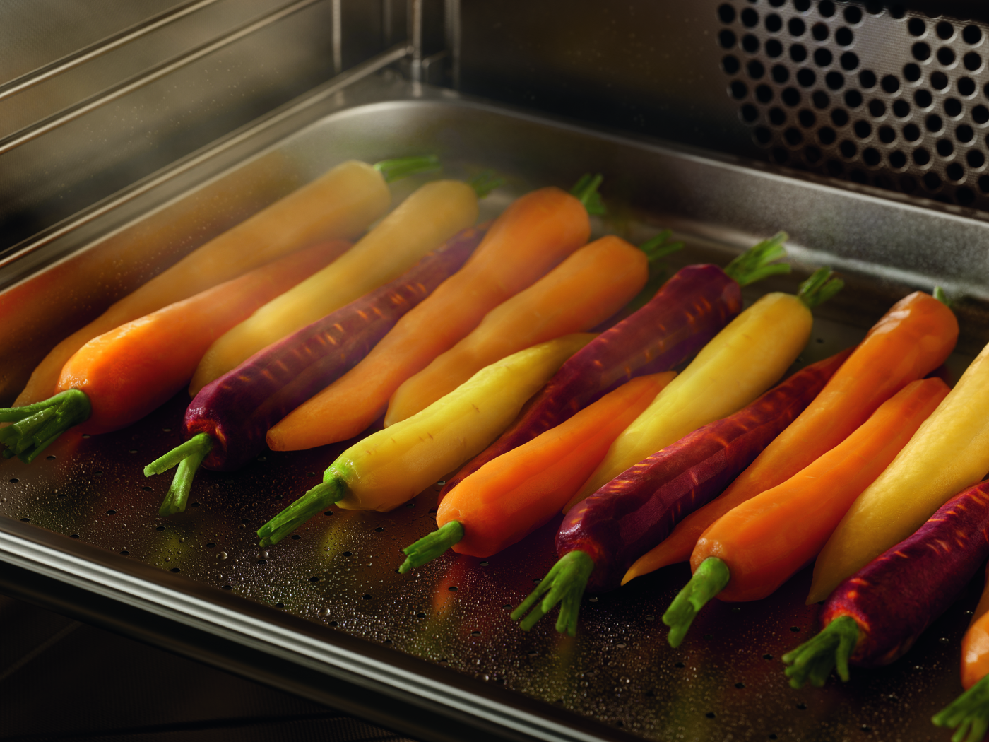 Az alapanyagok hosszan tartó frissessége elengedhetetlen az ízletes ételek elkészítéséhez. A Miele hűtők DynaCool rendszere egyenletes hőmérsékletet biztosít a teljes belső térben, így nem kell azon gondolkodni, melyik alapanyag hova kerüljön. A PerfectFresh Active rendszer finom vízpárát permetez a zöldségek és gyümölcsök
