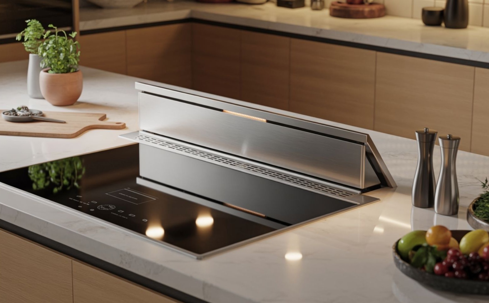 A pultba süllyedő páraelszívók a leglátványosabbak: főzéskor kibukkannak, majd eltűnnek, és semmi nem utal arra, hogy a konyhában valaha is volt egy nagy acélszerkezet.