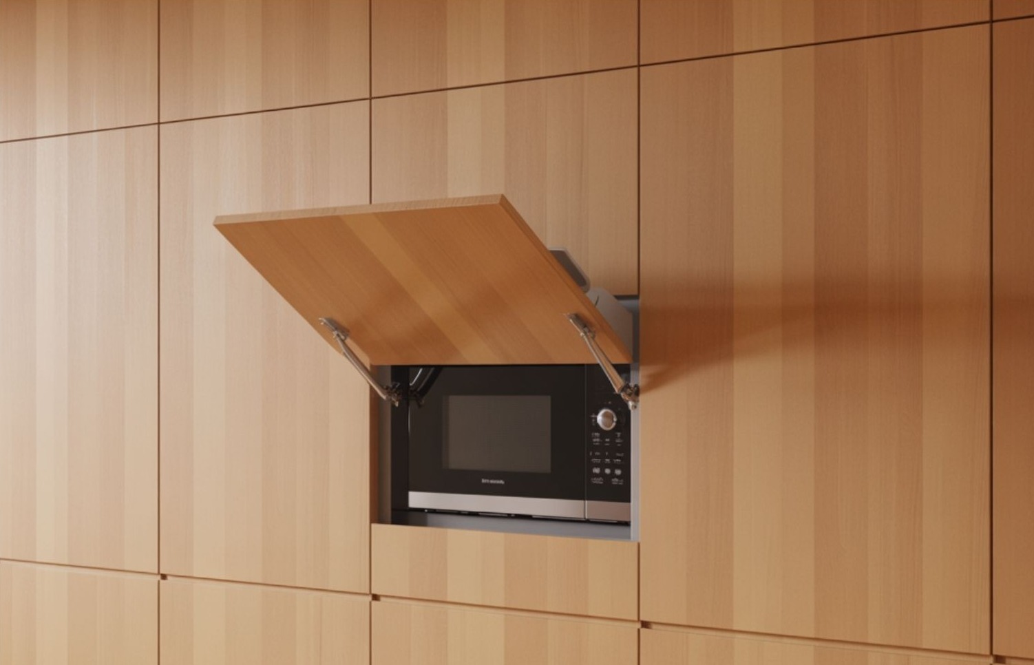 – felnyíló ajtós, „lift system” mikrók, amik használat után eltűnnek a szekrényben.