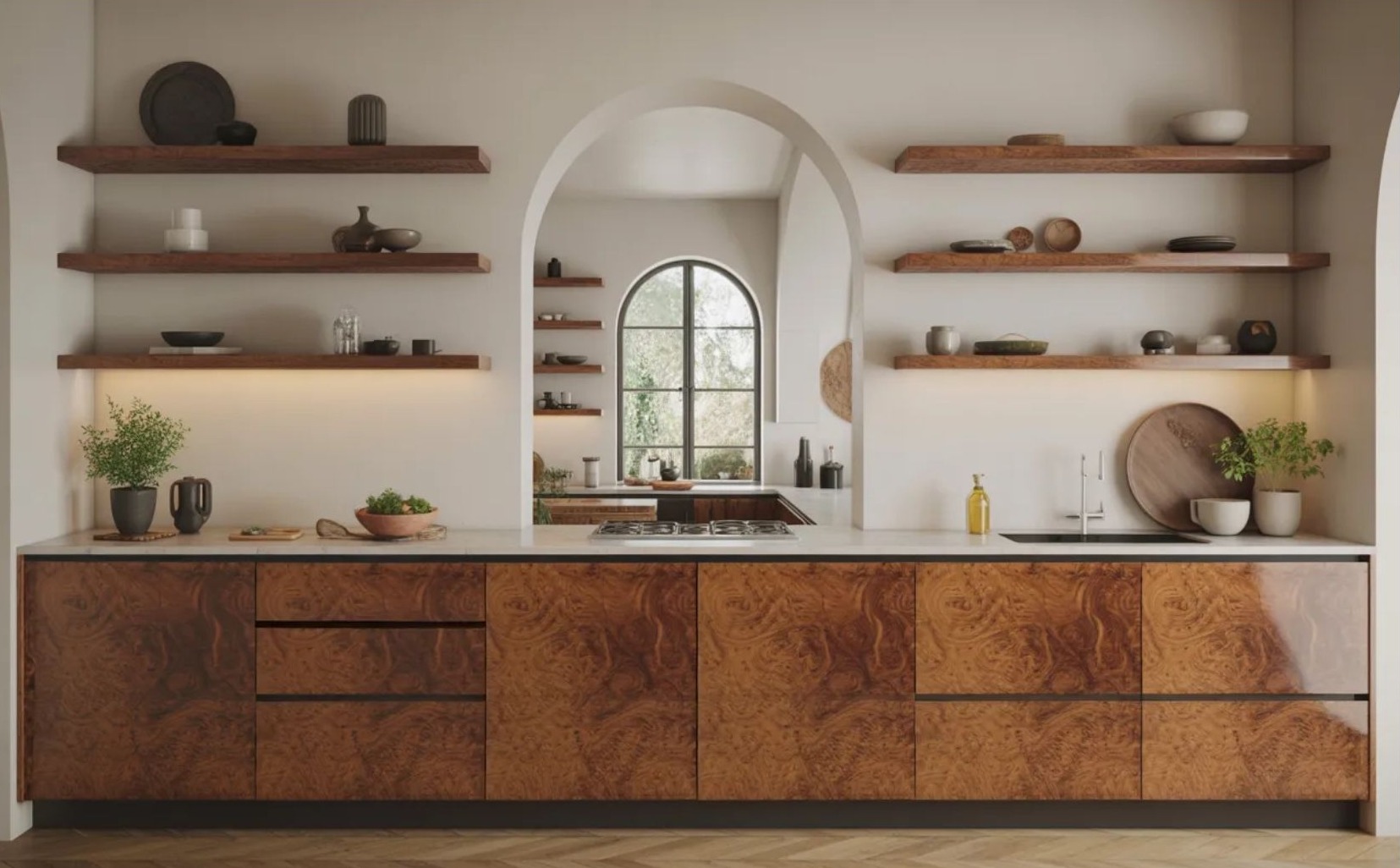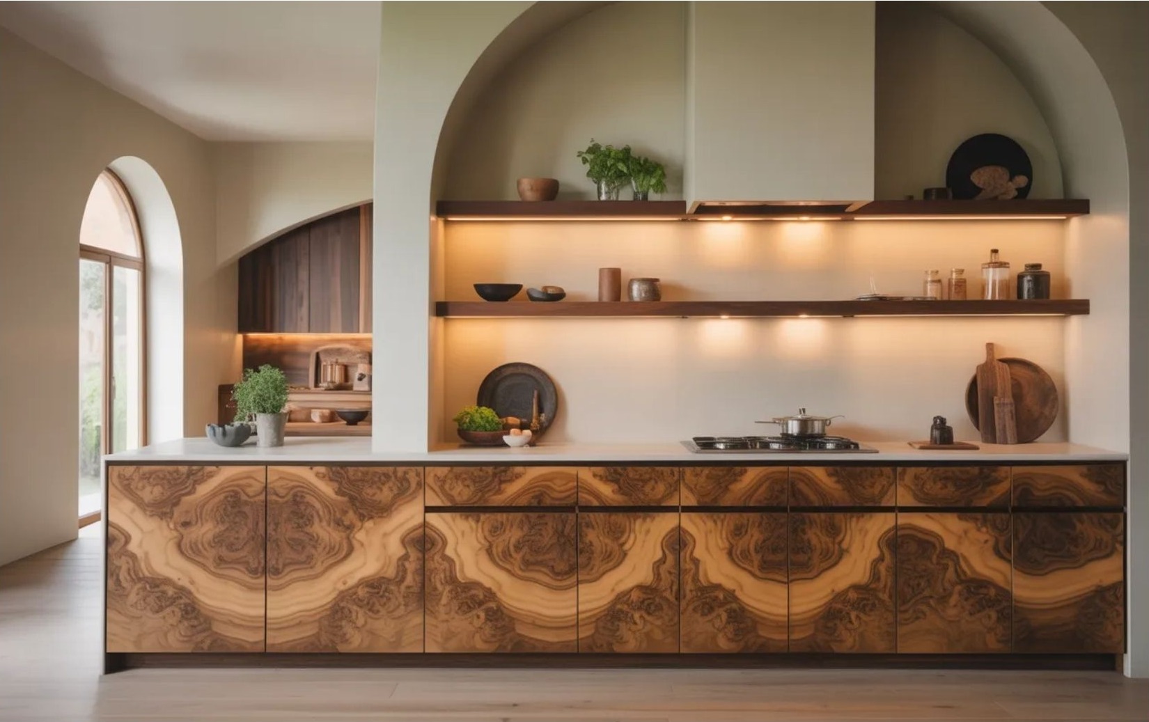 A burl wood fronttal készült modern konyha nem mindenkinek ideális választás – és éppen ez adja az erejét. Azoknak működik igazán jól, akik a luxus konyhát nem steril tökéletességként, hanem karakteres, személyes térként képzelik el. Ha a cél egy időtálló, mégis egyedi megjelenés, ami nem olvad bele a katalógus-minimalizmusba, akkor ez az anyag tudatos döntés lehet. Különösen jól illeszkedik az organikus modern stílushoz, ahol a természetes fafront és a letisztult forma párbeszédben áll egymással. A kérdés tehát nem az, hogy divatos-e, hanem az, hogy illeszkedik-e a tér identitásához.