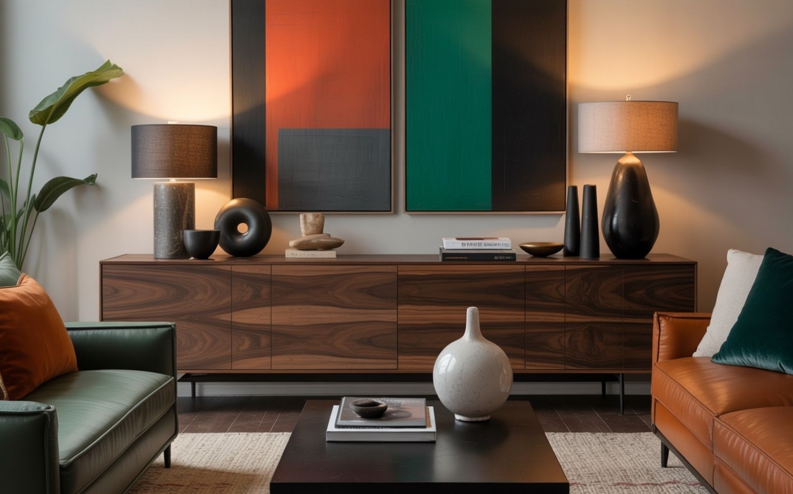 2026 egyik legerősebb nappali trendje a sötét fa bútorok visszatérése. A világosra pácolt, szinte elszíntelenített felületek után újra teret kapnak a karakteres fafajták: diófa, mahagóni, cseresznye, ében.