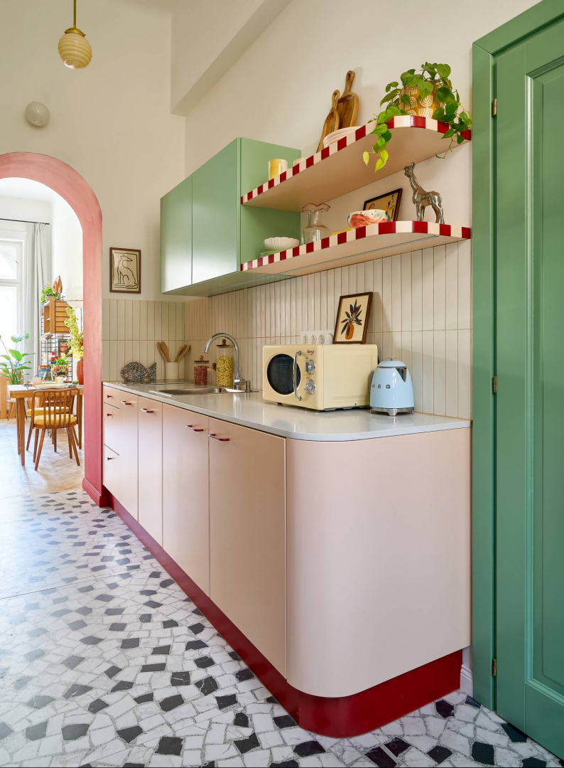 Az egyik kiválasztott magyar projekt egy 41 négyzetméteres budapesti vendéglakás, amit Koma Zsófia tervezett a Daken Studio égisze alatt. A korábban elhanyagolt térből egy világos, karakteres és játékos enteriőr született, ami tudatosan szakít azzal az előítélettel, hogy a színek használata kockázatos vagy nehezen kezelhető.