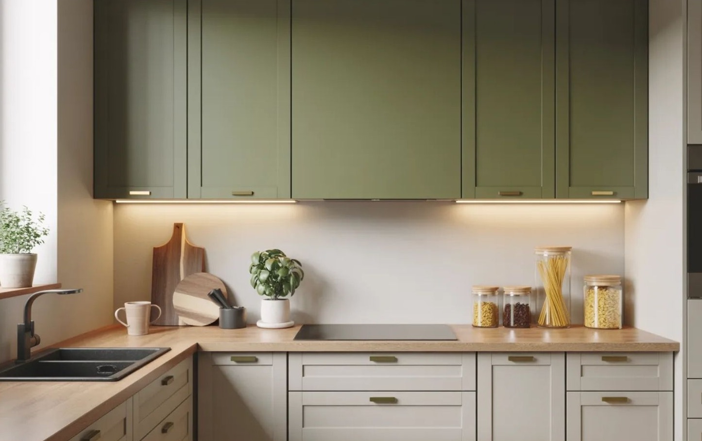 A kulcs itt az arány: nem kell mindent színesre festeni. Elég lehet egy szekrénysor, egy falrész vagy akár csak a konyhasziget. A világos alap és a visszafogott színek együttese friss, barátságos és meglepően tágas hatást kelt.
