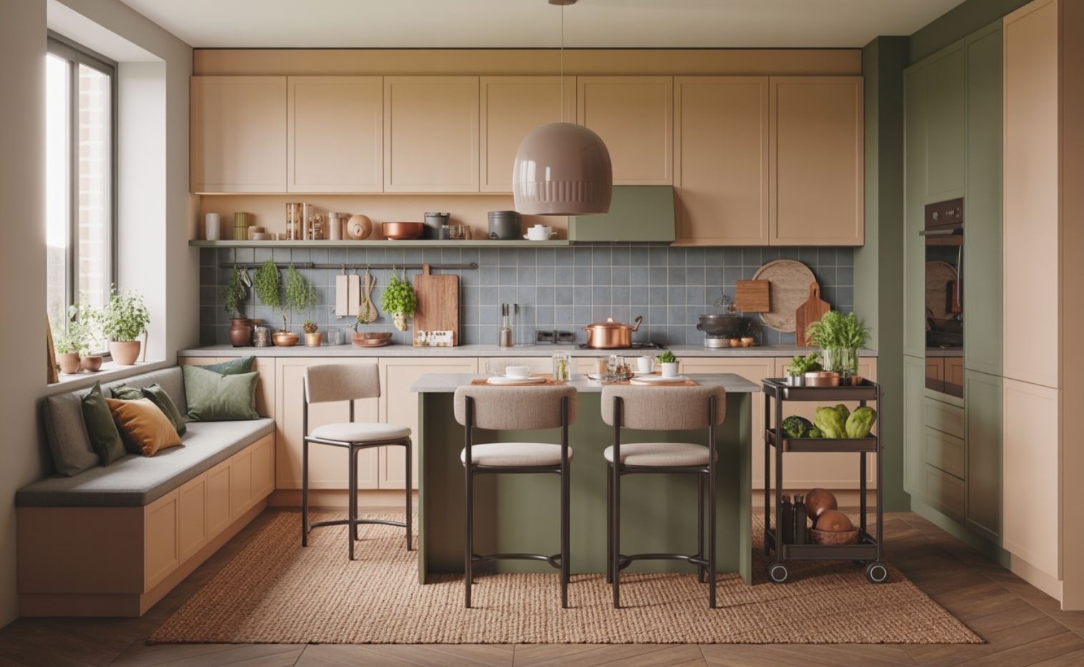 A soft kitchen színvilága jellemzően meleg, természetes árnyalatokra épül. Bézsek, földszínek, lágy zöldek és tompa kékek jelennek meg, amik nyugalmat sugároznak, és nem fárasztják a szemet. Ezek a színek hosszabb időtöltésre alkalmas környezetet teremtenek, szemben a korábbi, hideg fehér–szürke dominanciával.