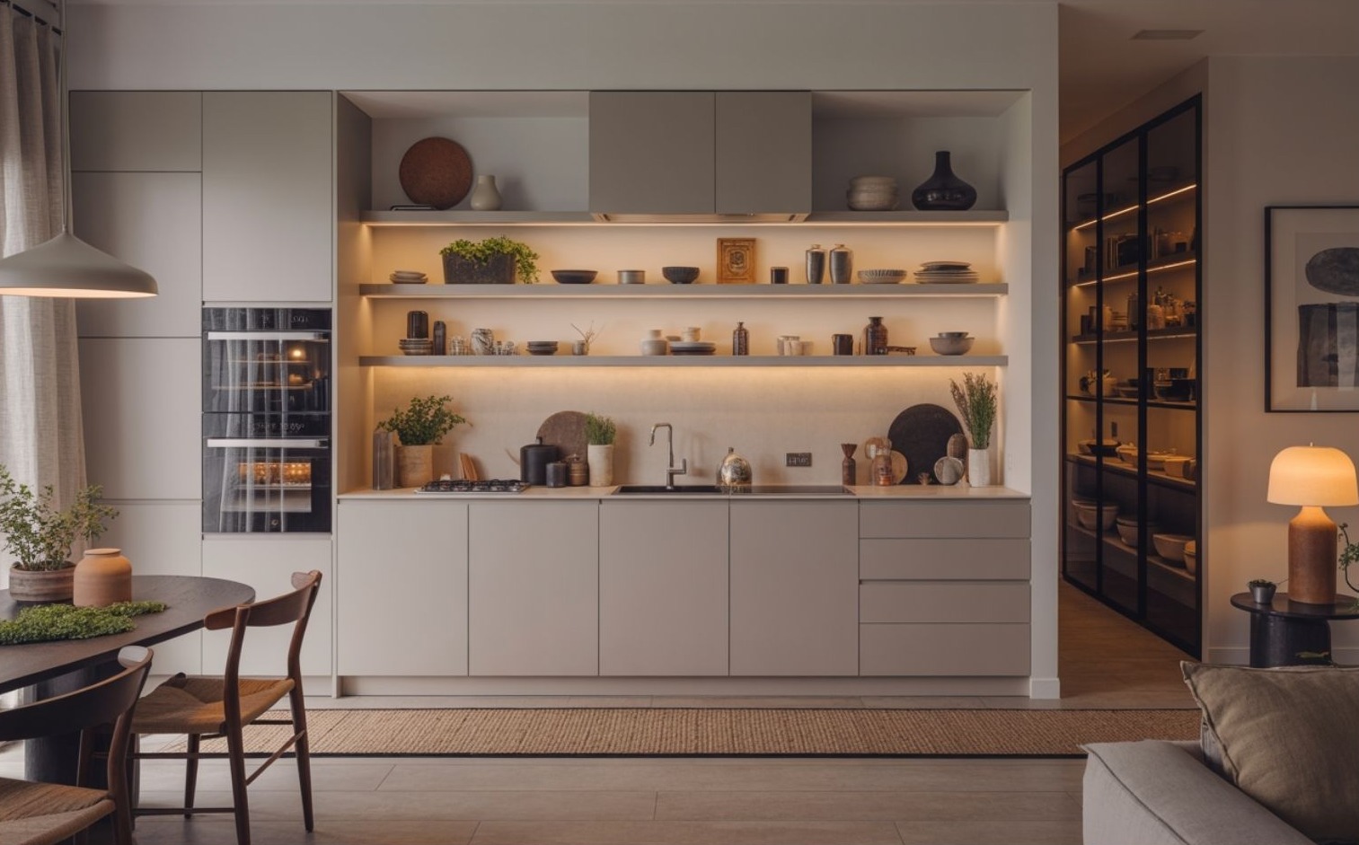 Talán a legérdekesebb trend. A konyha 2026-ban beleolvad az egészbe — elegáns, nappaliszerű, otthonos.