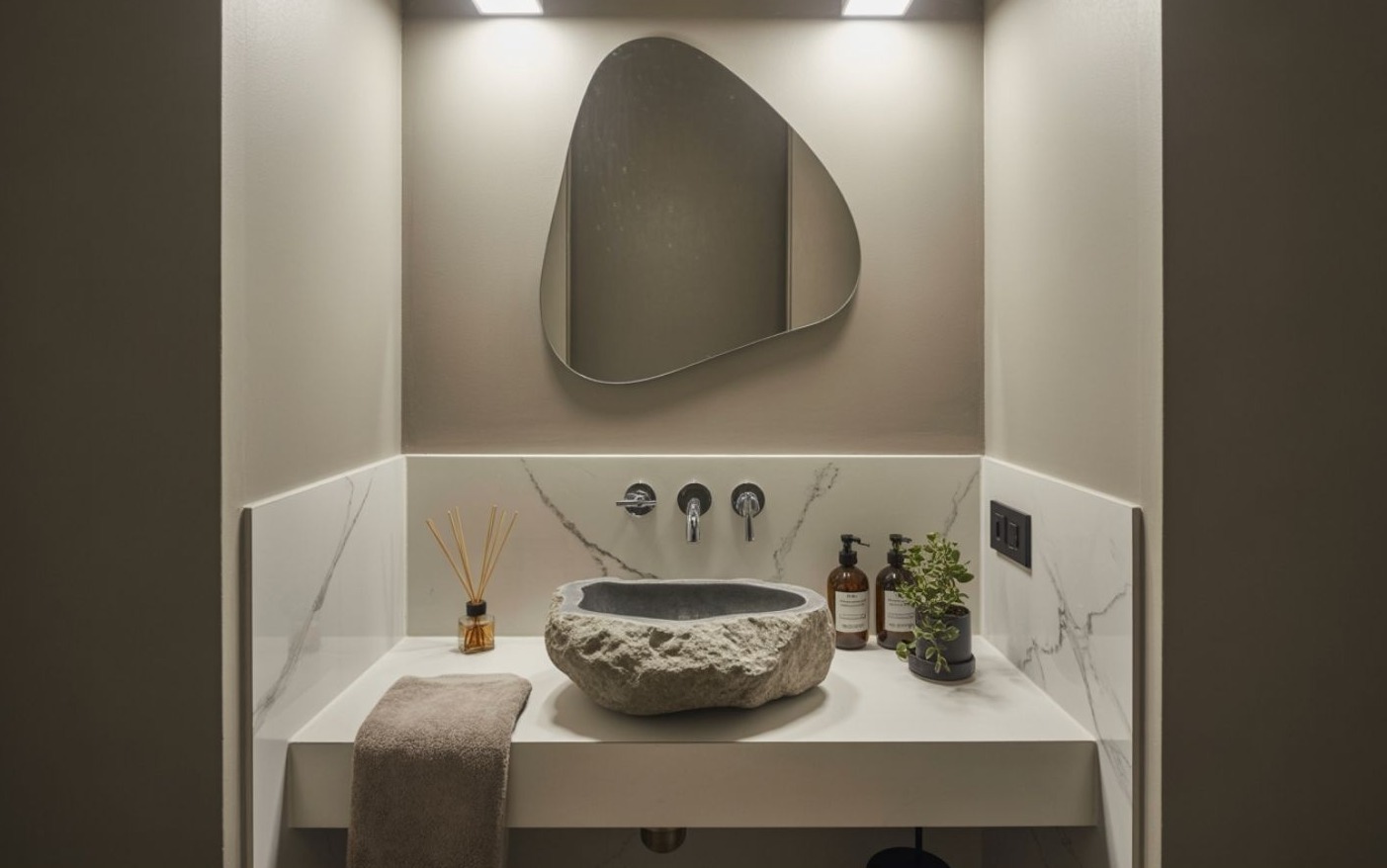 Ha szeretnéd, hogy a vendégmosdó ne csak különleges, hanem időtálló is legyen, válassz anyagban gazdag, mégis harmonikus kombinációkat – például márványt, fát és meleg fémet.