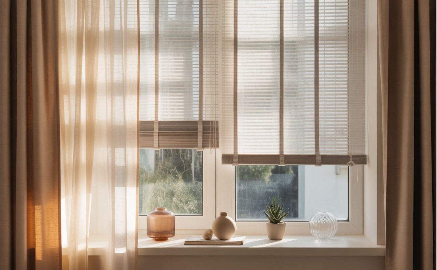 A redőnyök, roletták és fényáteresztő panelek továbbra is jelen lesznek, de 2026-ban háttérelemként működnek. A dizájn a textúrára és a rétegzettségre helyezi a hangsúlyt, így a minimalista árnyékolók aláfestik – nem helyettesítik – a dekoratív textíliákat.