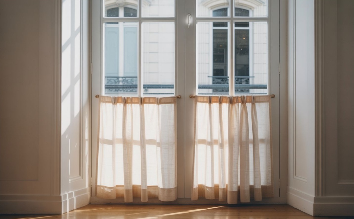 A francia lakások letisztult bája ismét erősen hat a dizájnra. A kávézófüggönyök visszatérnek — de most egyszerűbbek.