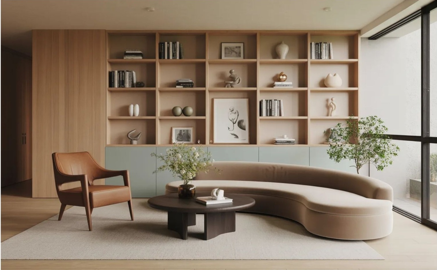 A puha textúrák – például bouclé, bársony vagy natúr fa – különösen jól erősítik az organikus hatást. Ezek az anyagok nemcsak látványban, hanem tapintásban is hozzájárulnak a nyugodt, meleg hangulathoz, ami az íves bútorok egyik legfontosabb előnye.