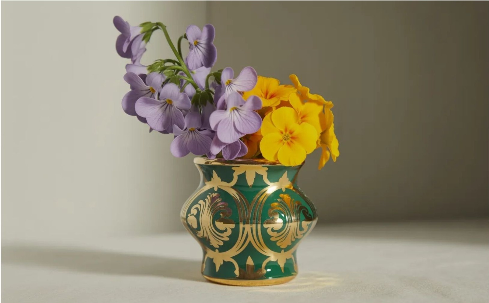 A ibolya (violet) és kankalin (primrose) lágyabb világot képviselnek. Egy februári ihletésű virágcsokor nem hivalkodó, inkább intim és személyes. Olyan választás, ami nem azonnal hat, hanem fokozatosan válik emlékezetessé.