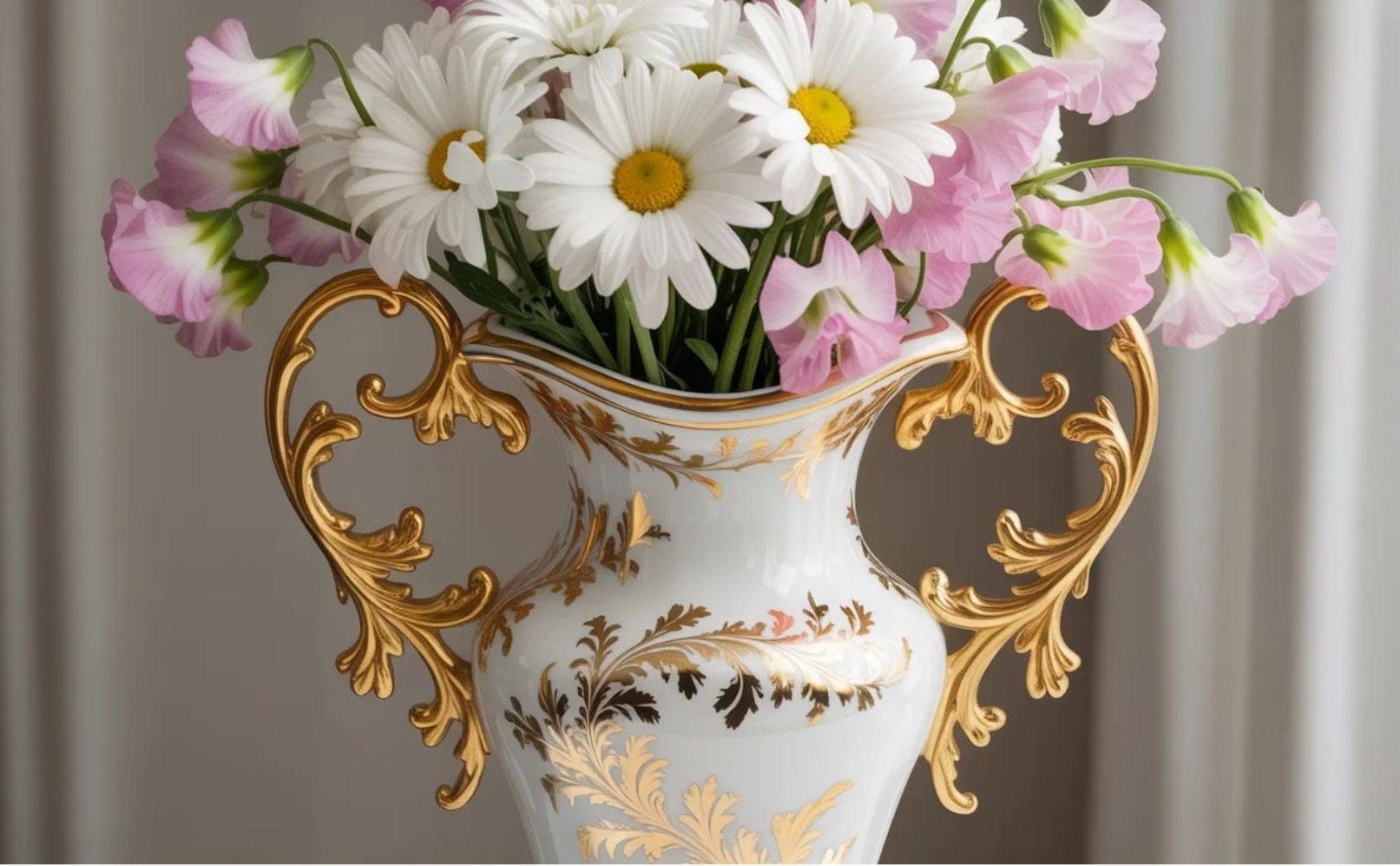 Az százszorszép (daisy) és szagosbükköny (sweet pea) játékosabb, szabadabb karaktert hoznak. Egy ilyen csokor nem akar tökéletes lenni – és éppen ettől válik hitelessé. Friss, természetes és könnyed hatást kelt.