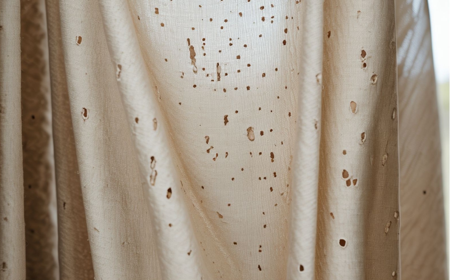 - apró, kerek lyukak a természetes szálú ruhákban,