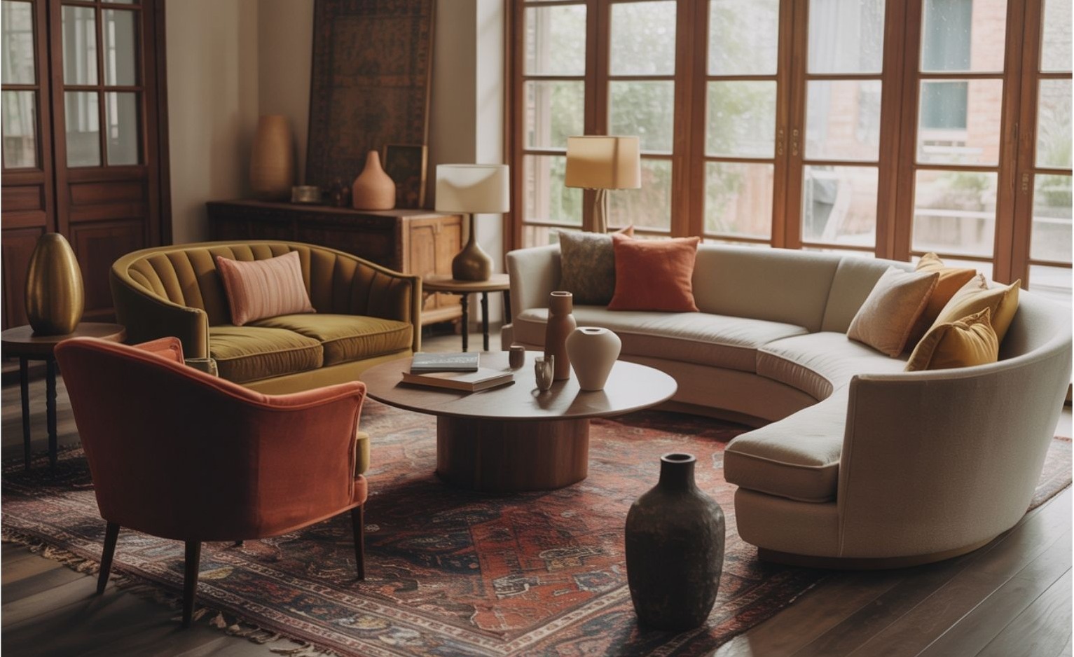 A trend sok szempontból a klasszikus szalonok világát idézi, de minden nosztalgia nélkül. A hangsúly az intimitáson és a rugalmasságon van. Nem egyetlen domináns kanapé uralja a teret, hanem több, egyenrangú ülőalkalmatosság.