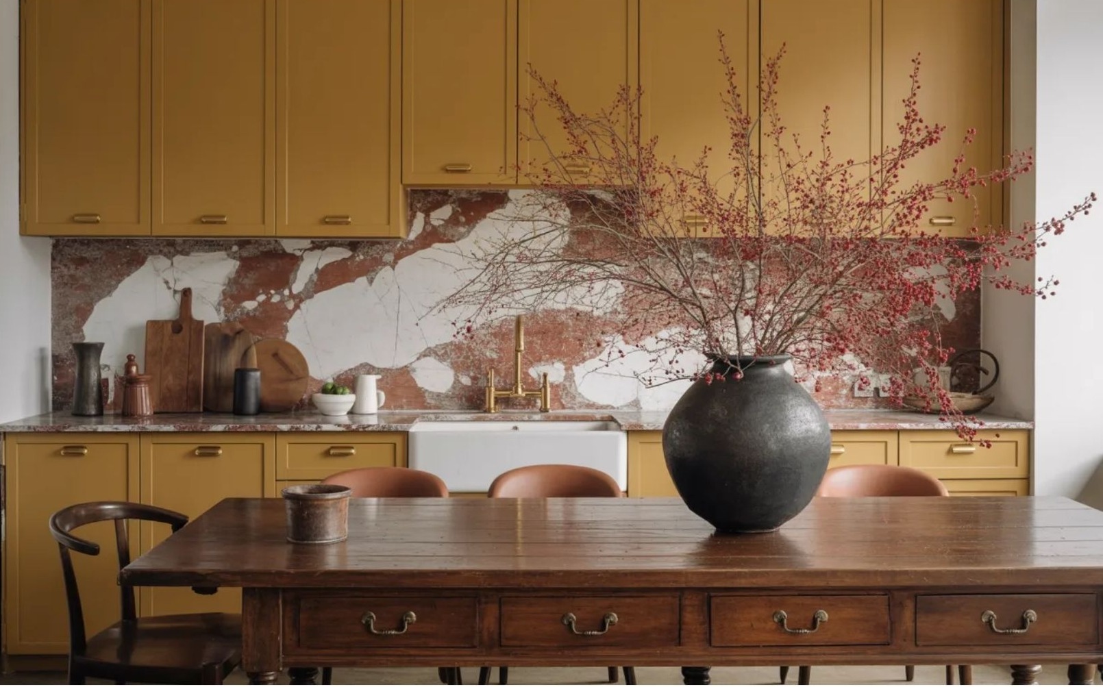 Egy otthonos konyha nem attól lesz meleg, hogy barna vagy bézs árnyalatok dominálnak benne. A melegség sokkal inkább az anyaghasználatból fakad.