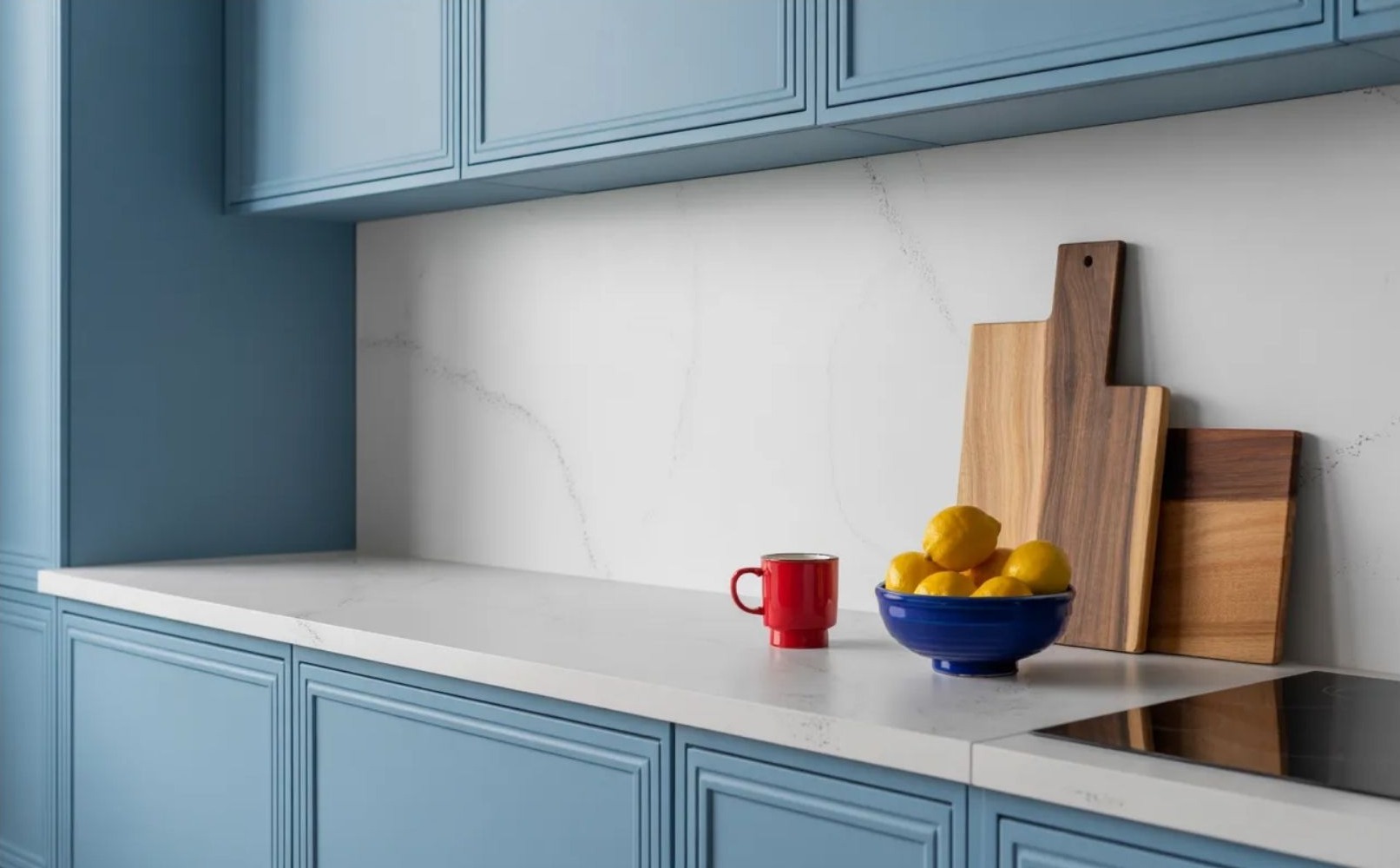 A legtöbb jól működő konyhában nincs két teljesen azonos felület. A színek közel állnak egymáshoz, de nem egyeznek. A felületek hasonlók, de nem ismétlődnek pontosan.