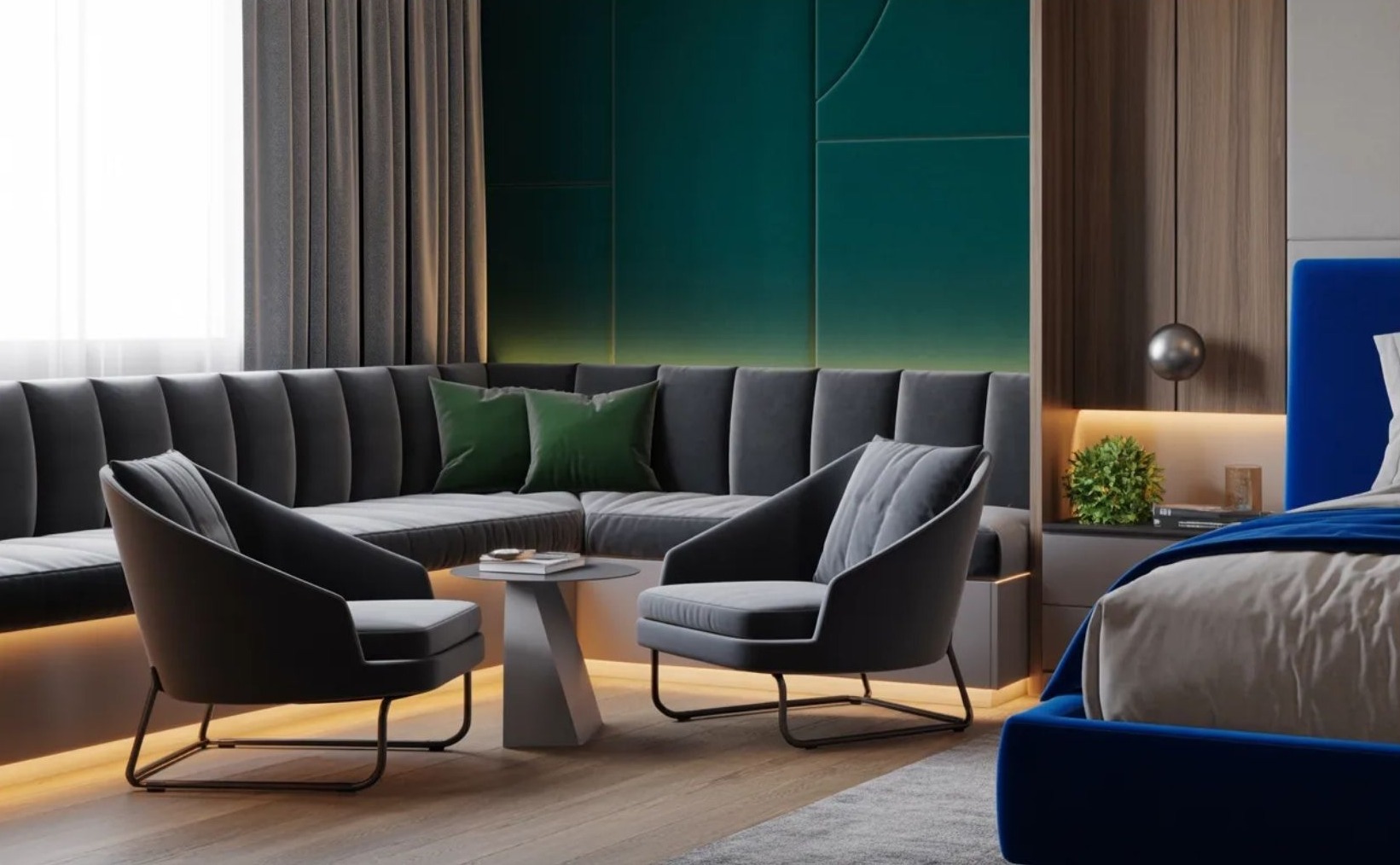 Sokan azt gondolják, ehhez nagy alapterület szükséges. Valójában nem. Egy 10–12 négyzetméteres hálóban is kialakítható ülősarok, ha a bútorválasztás arányos.