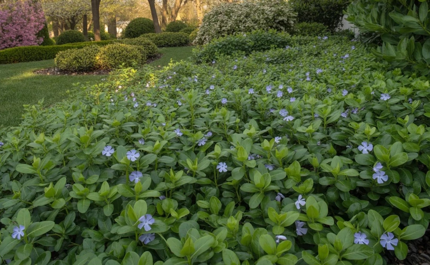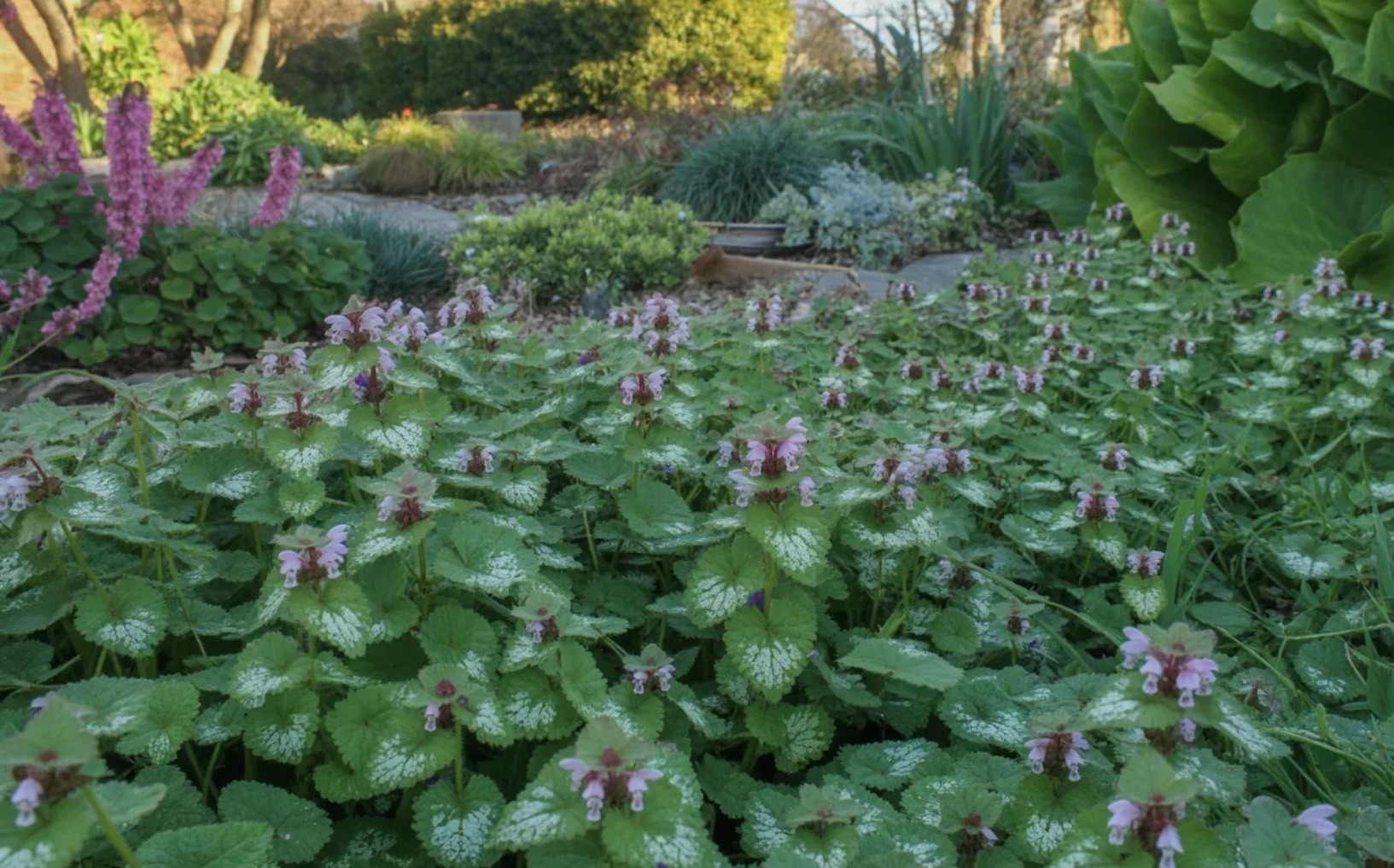 A kis meténg (Vinca minor) sűrű gyökérszőnyeget képezve kiszorítja a gyengébb dísznövényeket; valamint a püspöksüvegként is ismert foltos árvacsalán (Lamium maculatum) kedvező körülmények között agresszíven terjed az árnyékos kertrészekben. Ezek az ismert és elterjedt invazív talajtakaró növények kezdetben praktikus megoldásnak tűnnek a gyomosodás ellen, de hosszú távon a biodiverzitás csökkenéséhez és a kert egyensúlyának felborulásához vezethetnek.