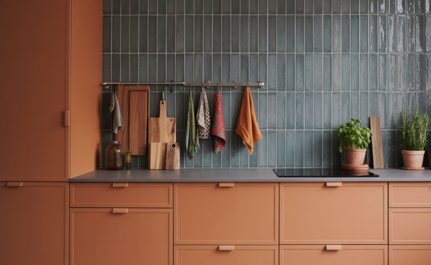 Míg korábban a hátfal alig néhány csempesorra korlátozódott, ma már sokan a teljes falat burkolják – egészen a mennyezetig. Ez nemcsak látványosabb, hanem optikailag is megemeli a teret, ami különösen előnyös a kis konyhákban.
