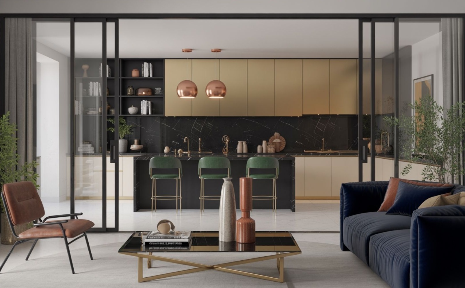 A 2026-os konyhai trendek egyik legfontosabb kulcsszava a zónásítás. Ahelyett, hogy minden egy térben olvadna össze, finom eszközökkel különböző funkciójú területek jönnek létre: kávésarok, reggeli állomás, minibár vagy akár egy csendes olvasósarok a konyha peremén.