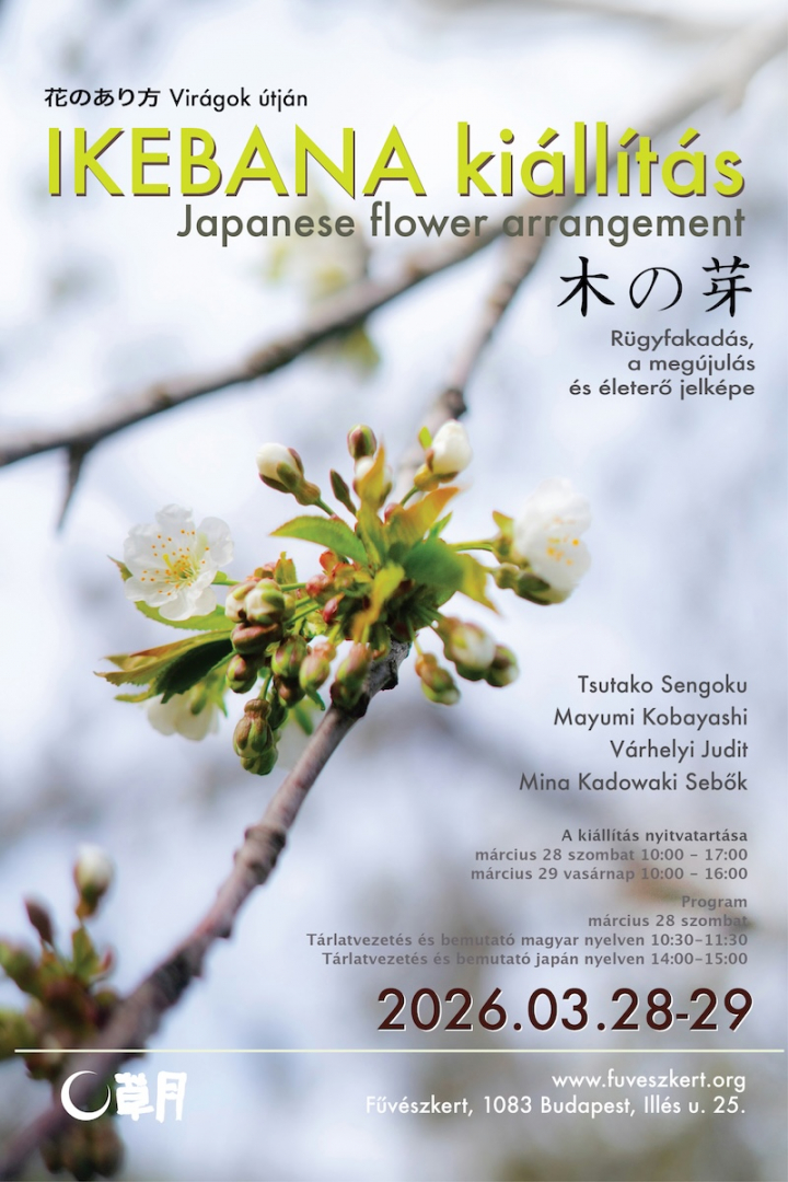 Ötödik alkalommal mutatkozik be a Sogetsu ikebana a Füvészkertben. Az idei téma a 木の芽色 kinomeiro, a rügyfakadás friss zöldje. Tavasszal mindannyian örömünket leljük a természet megújuló színeiben. Japánban különösen nagyra értékelik a zöld szín szépségét és erejét. A tavaszi zöld számos hagyományos, japán szín nevében megjelenik, mint például a shinryoku (friss lombzöld), a moegi-iro (csíra-zöld), a wakakusa-iro (fiatal fűzöld) vagy a kinome-iro (rügyzöld). Ezek az árnyalatok az életerőt, a fiatalságot és az élet csendes kitartását idézik meg. A 木の芽時 (konomedoki), azaz „a rügyezés ideje”, a japán költészetben a márciusra utaló évszakszó, szezonális kifejezés. A kora tavaszi természet gyengéd, zöld árnyalatait idézi fel; a tél csendje után az élet ébredését és az energia áradását. A kétnapos kiállításon ezt a megújulással teli pillanatot szeretnék megmutatni, hogy a kinome színe segítsen átélni a természet újjászületésének szépségét.