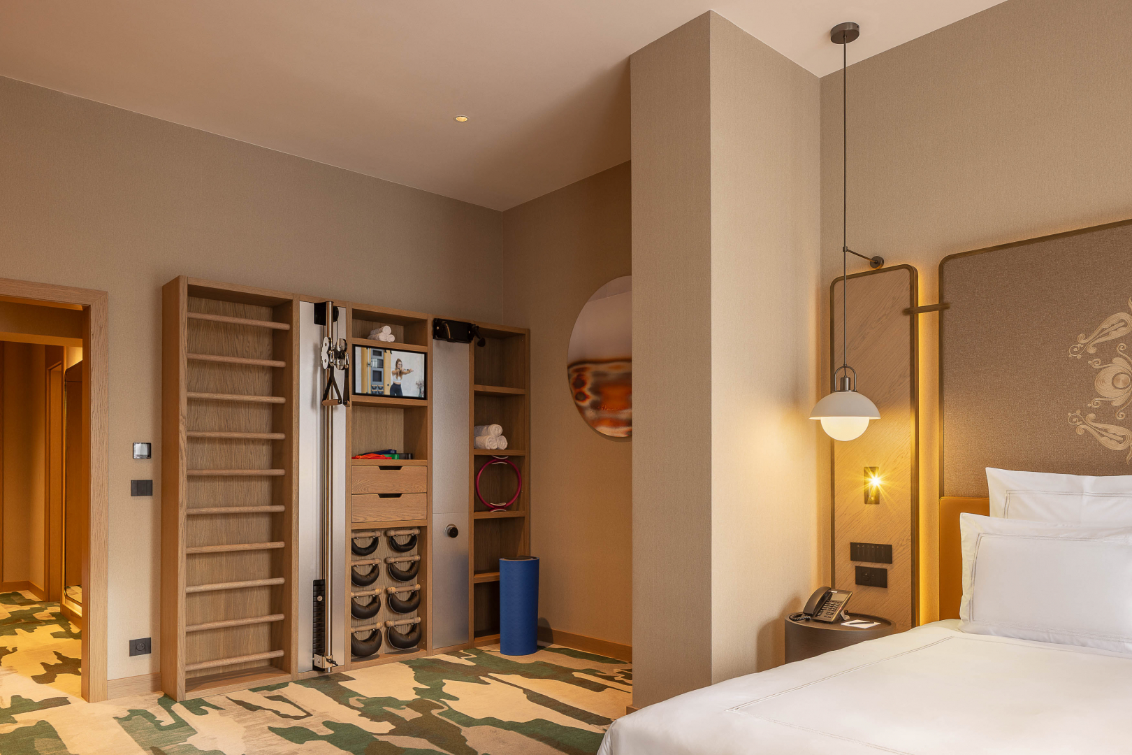 A test és a lélek egyensúlya végig jelen van a szálloda szemléletében. A prémium wellness- és spa részleg mellett a szobák egy részében egy beépített fitnesz fal formájában is megjelenik a mozgás lehetősége, így az aktív feltöltődéshez sem kell kizökkenni a saját világunkból.