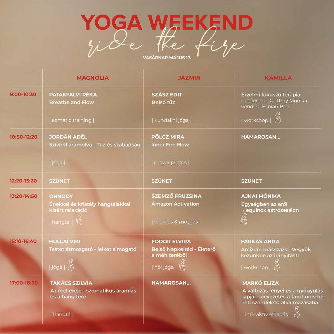 Ismét YOGA WEEKEND az ELLE szervezésében: a Tűz–Ló évének inspiráló energiái most egy különleges jógahétvégén kelnek életre, ahol a dinamizmus, a szenvedély és a tudatosság találkozik – a belső tűz felébresztésével és a flow-élmény megtalálásával a középpontban.