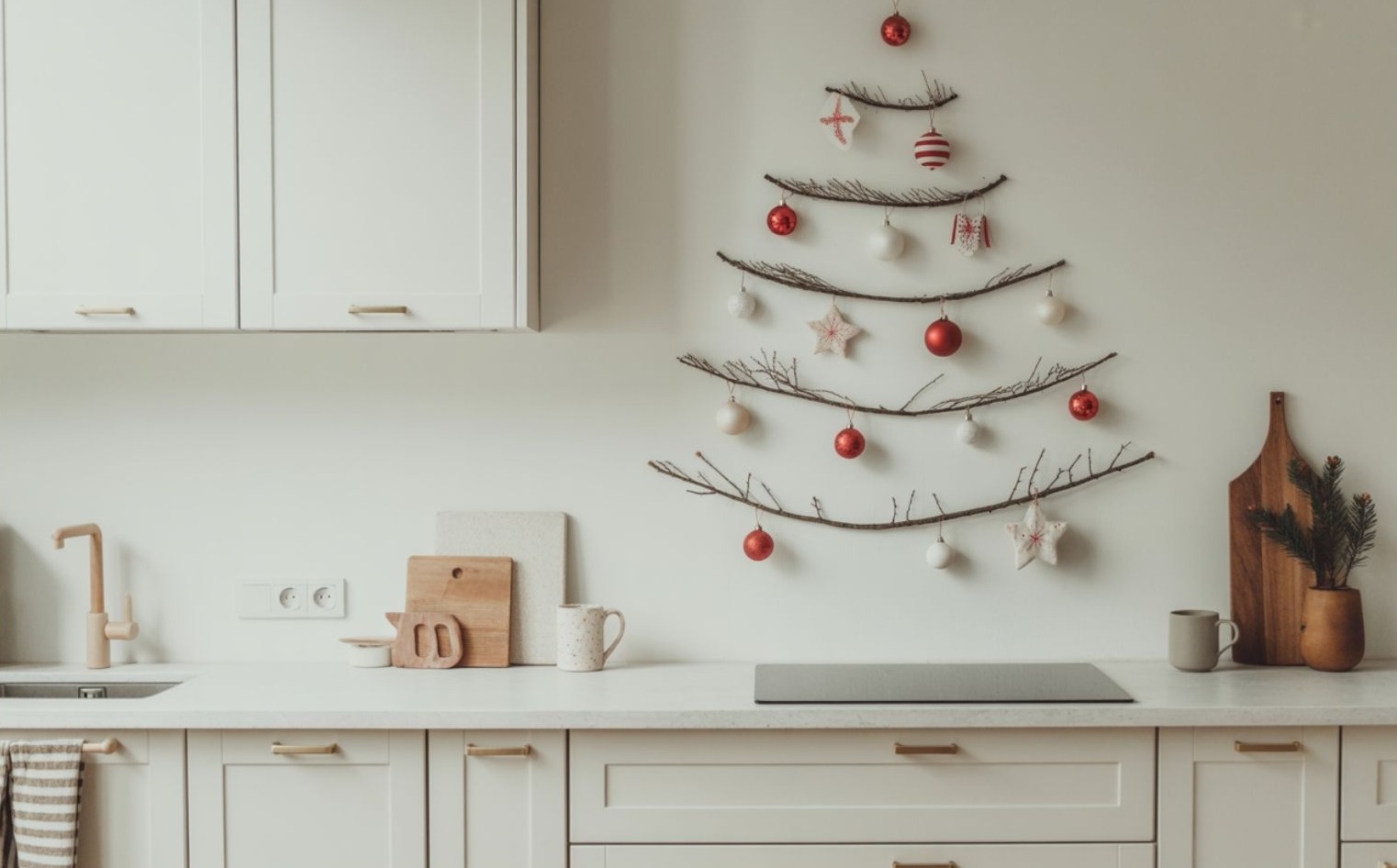 A gallyakból készült karácsonyfa idén az egyik legtrendibb karácsonyi dekoráció. Letisztult, helytakarékos, modern — és tökéletes választás a konyhába.