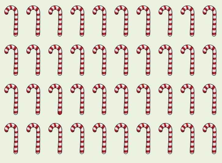 Az alábbi képen több, első ránézésre teljesen egyforma karácsonyi cukorpálcát látsz, a látszat viszont bizony csal, mert az egyik apró részletében ugyan eltér, de a többitől. A kérdés csak az: képes vagy 5 másodperc alatt kiszúrni, melyik lóg ki a sorból?