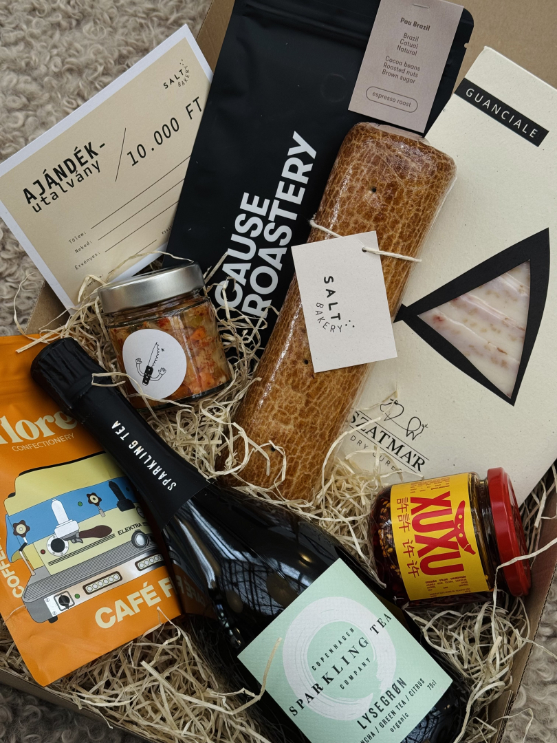 Az édességek mellett a Salt három nagy ünnepi csomagot is összeállított: a Lefkovics Lea-válogatás, a Tóth Szilárd-válogatás, valamint egy all star Bakery-válogatás közül választhatunk. Utóbbiban többek között szagos mügés tojáslikőr is helyet kap, míg Szilárd saját válogatásában a Szatmár Dry Cured különlegességei jelennek meg, amelyek egyenesen a nyírmeggyesi családi húsérlelőből érkeznek. A teljes ünnepi kínálat elérhető a Salt webshopjában, ahol a részletek és a csomagok is áttekinthetők.