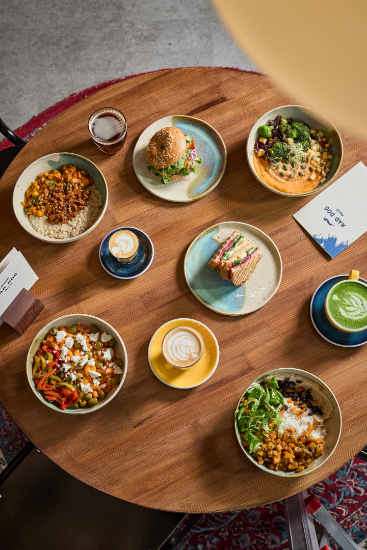 Ha olyan helyet keresel, ahol egyszerre lehet ráérősen beszélgetni, jókat enni és különleges italokat kóstolni, akkor a Mad Dog Hangár remek választás egy téli randira vagy baráti mini-karácsonyozásra. A specialty vonalat a Bányai kávé hozza, mellé pedig igazi különlegességek sorakoznak: Harrer Haiti 74%-os bean-to-bar forrócsoki, M Matcha hojicha cappuccino, kardamom–narancs latte vagy épp chocoMe kakaóhéj-tea, ami a csokigyártás melléktermékéből, a kakaóhéjból készül. A szendvicsfront kreatív és bátor: mézes-mustáros cékla–dióvaj–camembert–spenót toast, BBQ tofu vagy csirke bagel házi coleslaw-val, SonGoKu tortilla vagy habosított ricottás–tökmagolajos–chutney-s szendvics várja azokat, akik nem érik be egy „sima” melegszendviccsel. Ha inkább bowl-pártiak vagytok, akkor kókuszos rizses, sütőtök salsás, gnocchis vagy füstös édesburgonyakrémes tálak közül választhattok, mindegyikre jöhet füstölt tofu, csirke, lazac vagy feta, attól függően, mennyire legyen könnyű vagy komfortos az élmény. A desszertek között is van egy kis csavar: croissant puding készül a megmaradt LUI croissant-okból és granola sül házilag. Fontos, a maradékmentés itt nem trend, hanem természetes része a hely lelkének.