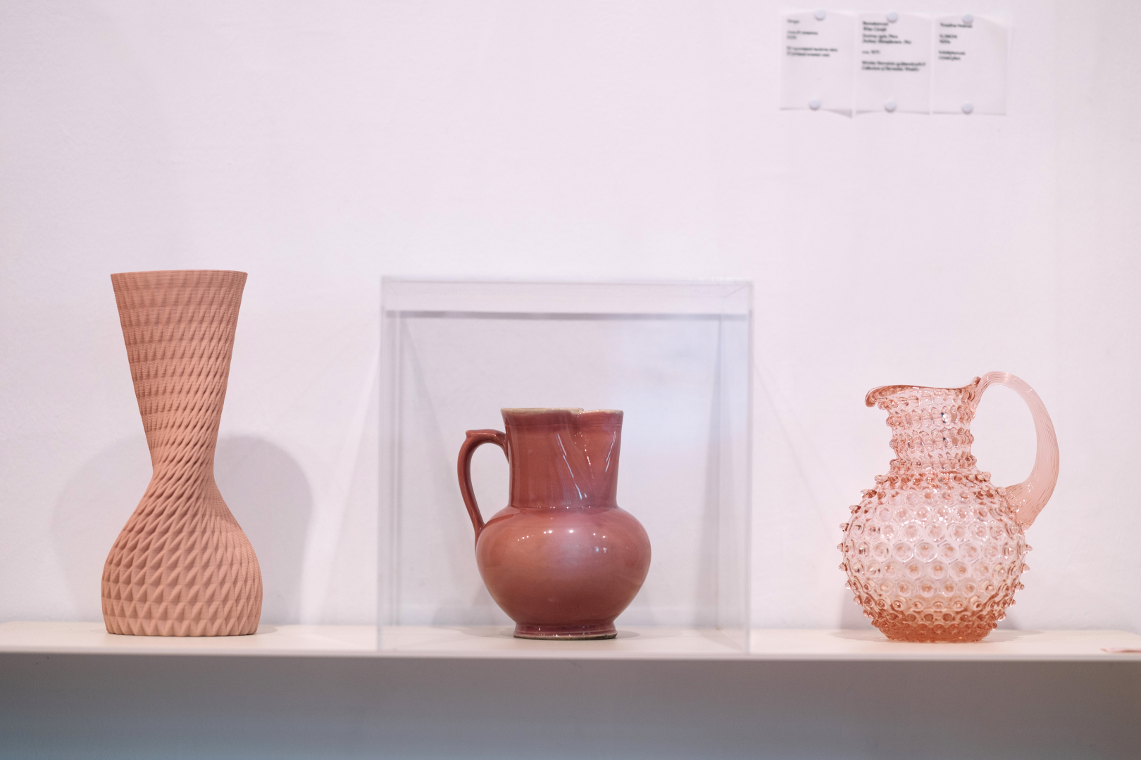 A közel negyven kiállítási tárgy között helyet kapott a pécsi Zsolnay-gyár ritka, rózsaszín árnyalatban pompázó boroskancsója, Winkler Barnabás gyűjteményéből, a KLIMCHI üvegtárgya, amely a 2023-as Barbie-filmben is feltűnt, valamint – az Egy Csepp Figyelem Alapítvány közbenjárásának köszönhetően – a cukorbeteg Barbie is feltűnik, ami a gyártó társadalmi érzékenyítő kezdeményezésének eredménye. A kortárs képzőművészetet többek között Szombat Éva, Rédling Hanna, Lőrincz Réka, Tayler Patrick és Körei Sándor alkotásai képviselik, a falakon pedig vásárolható illusztrációk is várják a látogatókat, köztük Gollob Hanna külön erre az alkalomra készült, kilenc ikonikus designtárgyat ábrázoló plakátja.