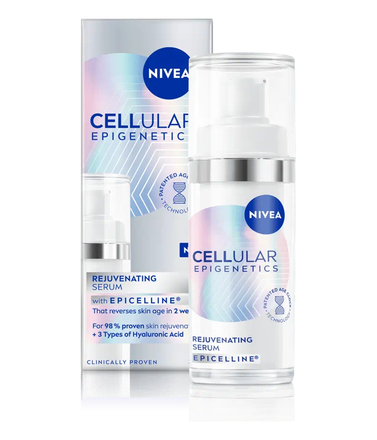 Vedd kezedbe az irányítást és próbáld ki a NIVEA bőrfiatalító újdonságát. A NIVEA több mint 15 évig tartó kutatómunka után igazolta, hogy nem csak a genetikai adottságok határozzák meg bőrünk állapotát: a stressz, az UV-sugárzás, a táplálkozás és életmódunk is nagy befolyással van rá. Ennek eredményeként jött létre a NIVEA Cellular Epigenetics Bőrfiatalító Szérum, mely a szabadalmaztatott EPICELLINE hatóanyagnak és az egyedülálló Age Clock technológiának köszönhetően képes visszafordítani a sejtszintű öregedés jeleit és már két hét alatt láthatóan fiatalosabb, frissebb bőrt eredményezhet.